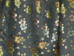 Dekostoff Blumen farbig Luxuriöser Stoff mit kalligrafischen chinesischen Schriftzeichen und Künstler-Signaturstempeln Der Stoff ist aus Mischgewebe und eignet sich besonders als Gardinenstoff oder zur Dekoration.